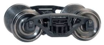 Tahoe Model Works trucks feature one-piece black acetal plastic moldings with separate brake shoe detail, and non-magnetic, insulated metal 0.088" wide semi-scale contour wheelsets. Dalman 2-level trucks equipped with the Barber Lateral Motion device. This feature used steel rollers and a roller seat between the springs and bolster to provide a little side-to-side movement of the car body to the track, reducing wear to wheel flanges, journals and couplers.